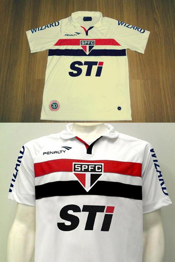 Ele fez um comparativo com a camisa que foi comprada pelo site e outra que foi comprada em uma loja oficial do São Paulo. E aí, qual é a falsa e qual a verdadeira? Vejam o vídeo e tirem suas conclusões.